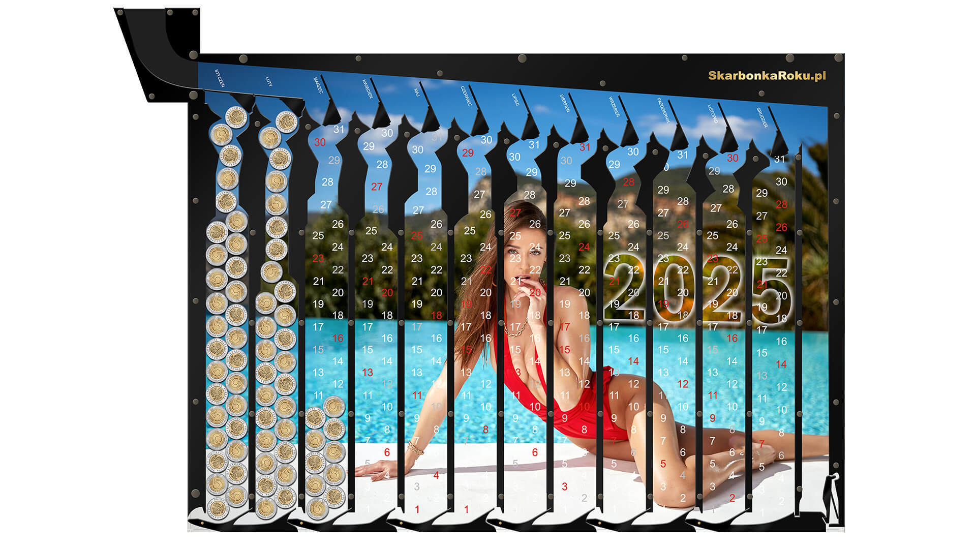 ➡️ Skarbonka w formie kalendarza Kalendarz 2025 Kobieta z cyferkami będzie nam przypominać kiedy wrzuciliśmy ostatnią monetę,
