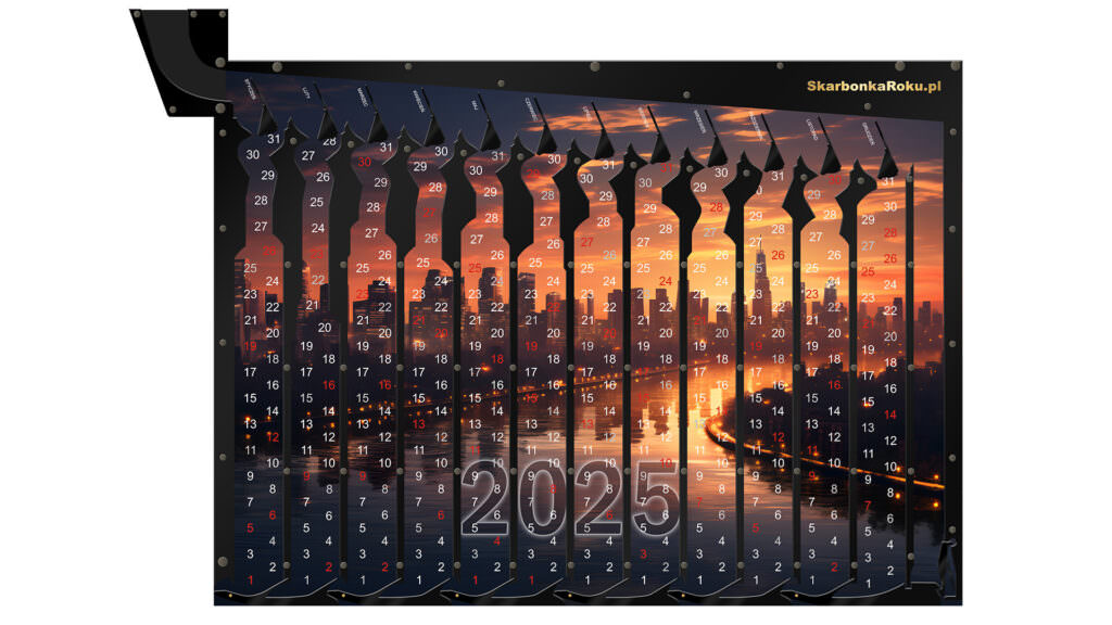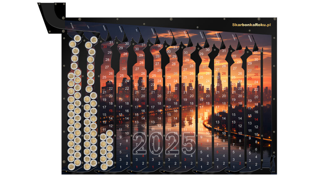 ➡️ Skarbonka w formie Kalendarz 2025 Miasto z cyferkami będzie nam przypominać kiedy wrzuciliśmy ostatnią monetę,