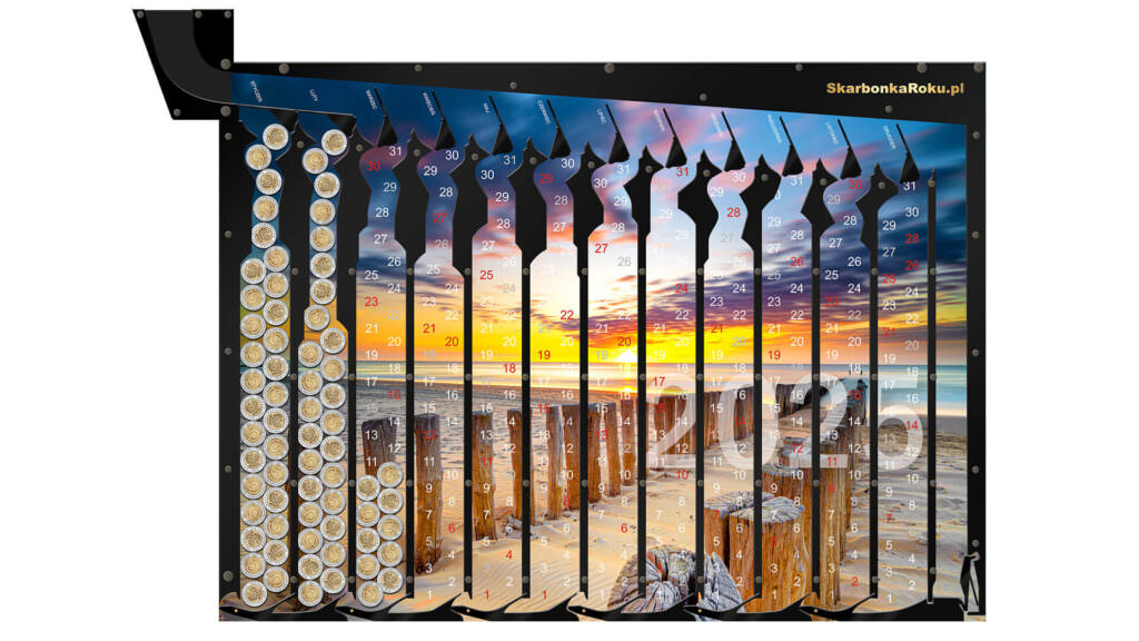 ➡️ Skarbonka w formie Kalendarz 2025 Morze z cyferkami będzie nam przypominać kiedy wrzuciliśmy ostatnią monetę,