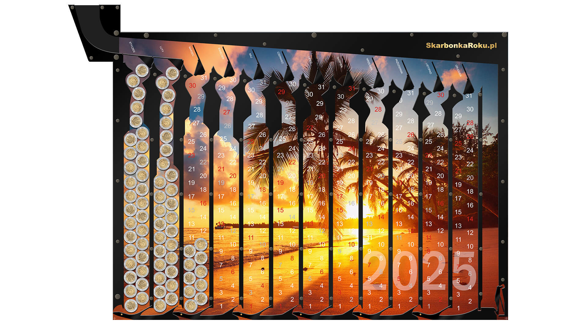 ➡️ Skarbonka w formie Kalendarz 2025 Wakacje z cyferkami będzie nam przypominać kiedy wrzuciliśmy ostatnią monetę,