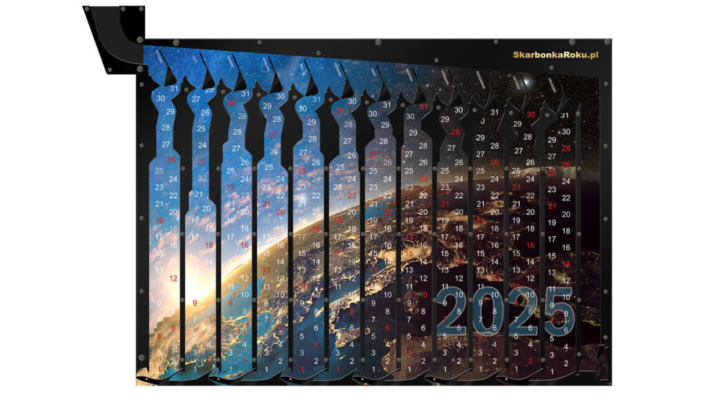 📆 Skarbonka w formie KALENDARZA na 2025 rok (posiada cyferki na plakacie)