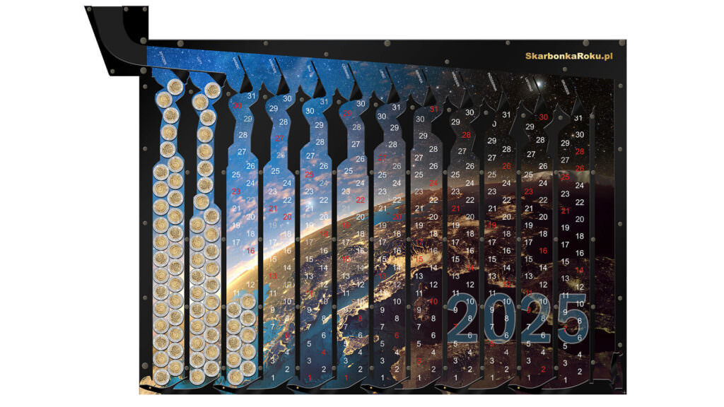 ➡️ Skarbonka w formie Kalendarz 2025 Ziemia z cyferkami będzie nam przypominać kiedy wrzuciliśmy ostatnią monetę,
