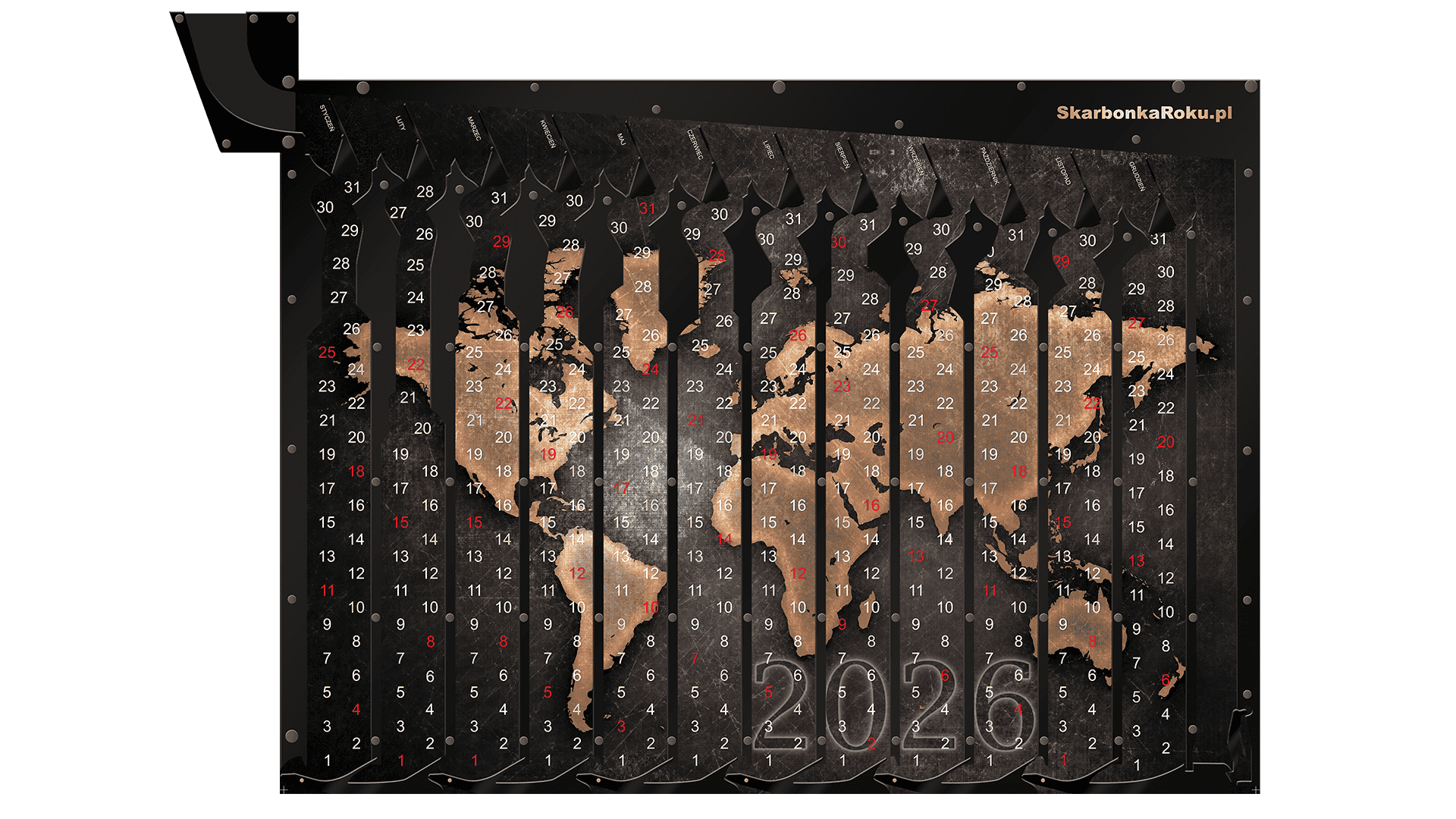 📆 Skarbonka w formie KALENDARZA na 2026 rok (posiada cyferki na plakacie)