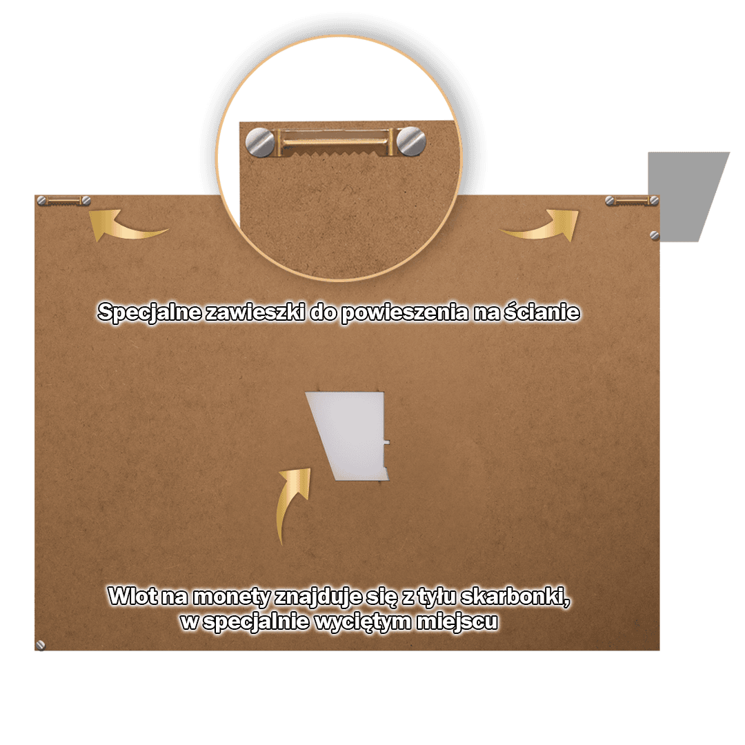 ➡️ Specjalne uchwyty, dzięki którym łatwo zawiesić skarbonkę na ścianie.