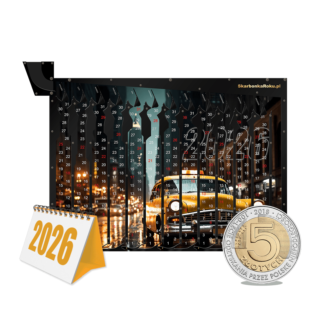 📆 Skarbonka w formie KALENDARZA na 2026 rok (posiada cyferki na plakacie)