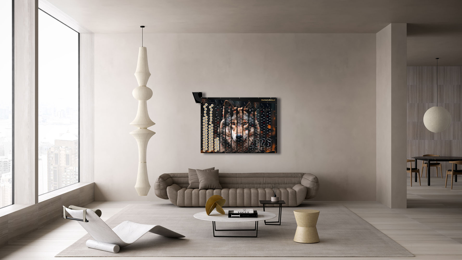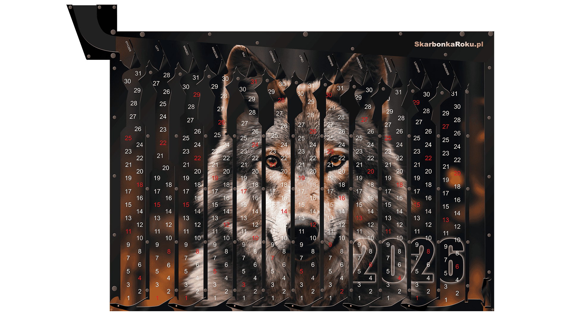 Kalendarz 2026 Wilk – Skarbonka Ścienna to unikalne połączenie praktycznego kalendarza i nowoczesnej skarbonki na 5 zł. Z tłem przedstawiającym majestatycznego wilka, symbolizującego siłę i niezależność, produkt staje się nie tylko organizerem, ale również efektowną dekoracją wnętrza. Idealny prezent dla miłośników natury, zwierząt i oryginalnych dodatków do domu.