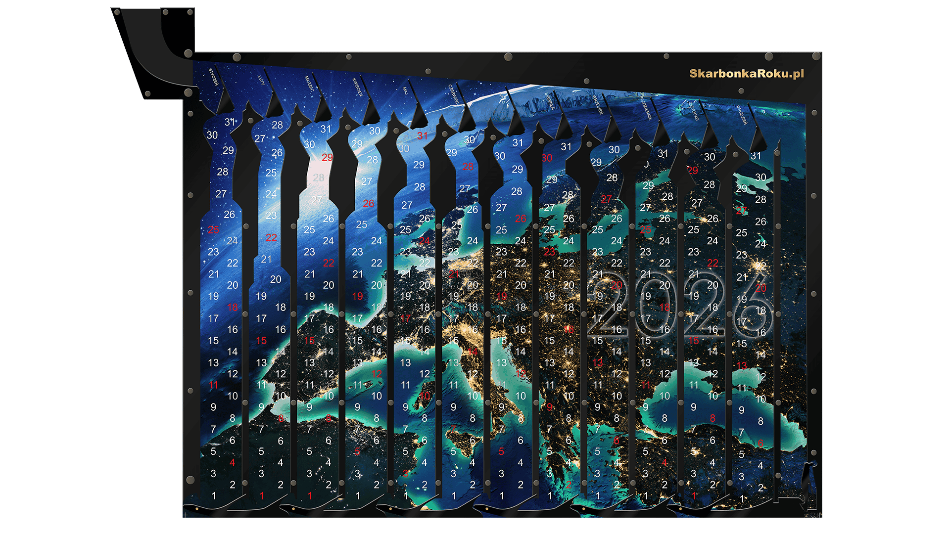 📆 Skarbonka w formie KALENDARZA na 2026 rok (posiada cyferki na plakacie)