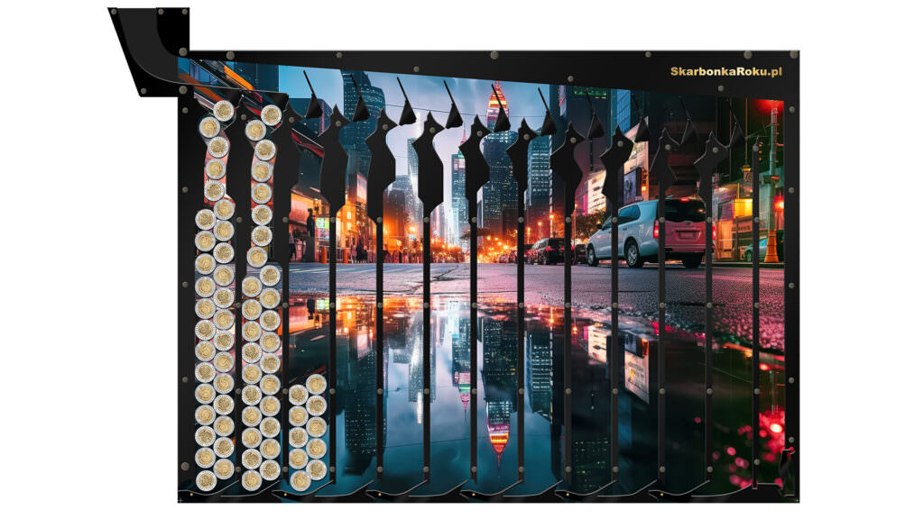 Nasze skarbonki na 5 zł pomogą i nauczą w ciekawy sposób jak odłożyć ciekawą sumę na swój wymarzony cel. Zamiast np. kupować dziecku kolejną zabawkę, pomyśl czy nie lepiej byłoby, aby ono samo odłożyło na nią pieniądze. Skarbonka Miasto Nocą na pewno mu w tym pomoże. Na naszej stronie znajdziecie szeroki wybór skarbonek dla dzieci oraz oczywiście dla dorosłych. Dzięki naszej skarbonce oszczędzanie będzie przyjemnością, a nie przykrym obowiązkiem!