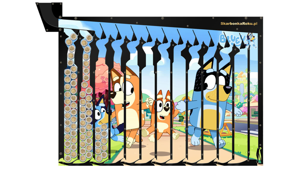 Skarbonka na 5 zł Bluey to oryginalny prezent z postaciami z popularnej bajki Bluey, dzięki której oszczędzanie pieniędzy stanie się wspaniałą zabawą. Skarbonka na 5 zł Bluey spodoba się na pewno i małym i dużym, a każdy fan i fanka niebieskiego pieska z uśmiechem będzie dorzucać kolejne piątki do rodziny Bluey.
