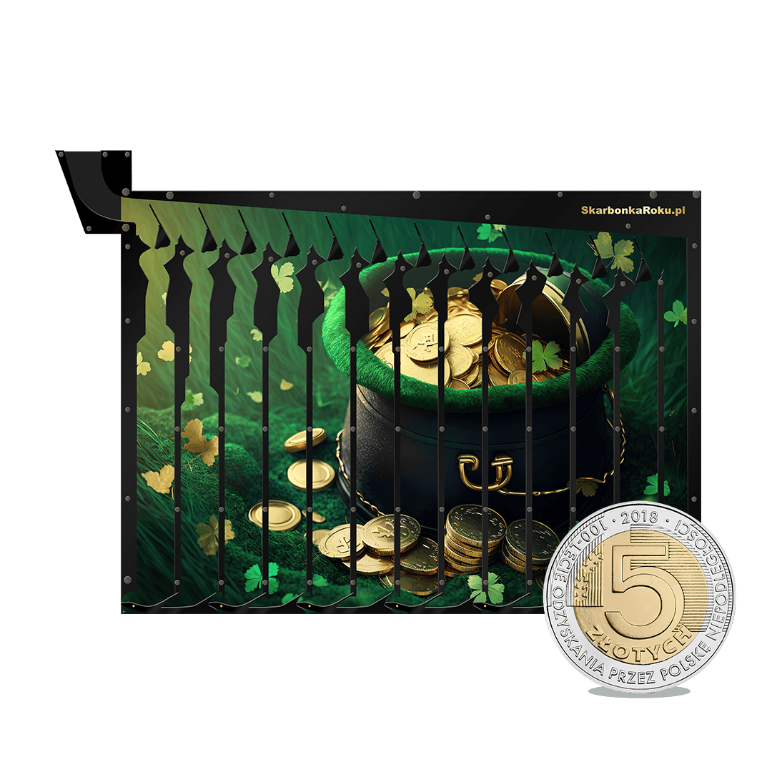 Garniec złota w postaci skarbonki na piątki to super opcja na prezent oraz motywacja do oszczędzania. Garniec złota jest kojarzony jako zbieranie monet i przechowywanie ich na dany cel, bo jak wiadomo na końcu tęczy znajduje się właśnie garniec złota strzeżony przez Leprechauna. Nasze skarbonki na 5 zł pomogą i nauczą w ciekawy sposób jak odłożyć ciekawą sumę na swój wymarzony cel. Zamiast np. kupować dziecku kolejną zabawkę, pomyśl czy nie lepiej byłoby, aby ono samo odłożyło na nią pieniądze. Skarbonka na pewno mu w tym pomoże. Na naszej stronie znajdziecie szeroki wybór skarbonek dla dzieci oraz oczywiście dla dorosłych. Dzięki naszej skarbonce oszczędzanie będzie przyjemnością, a nie przykrym obowiązkiem!