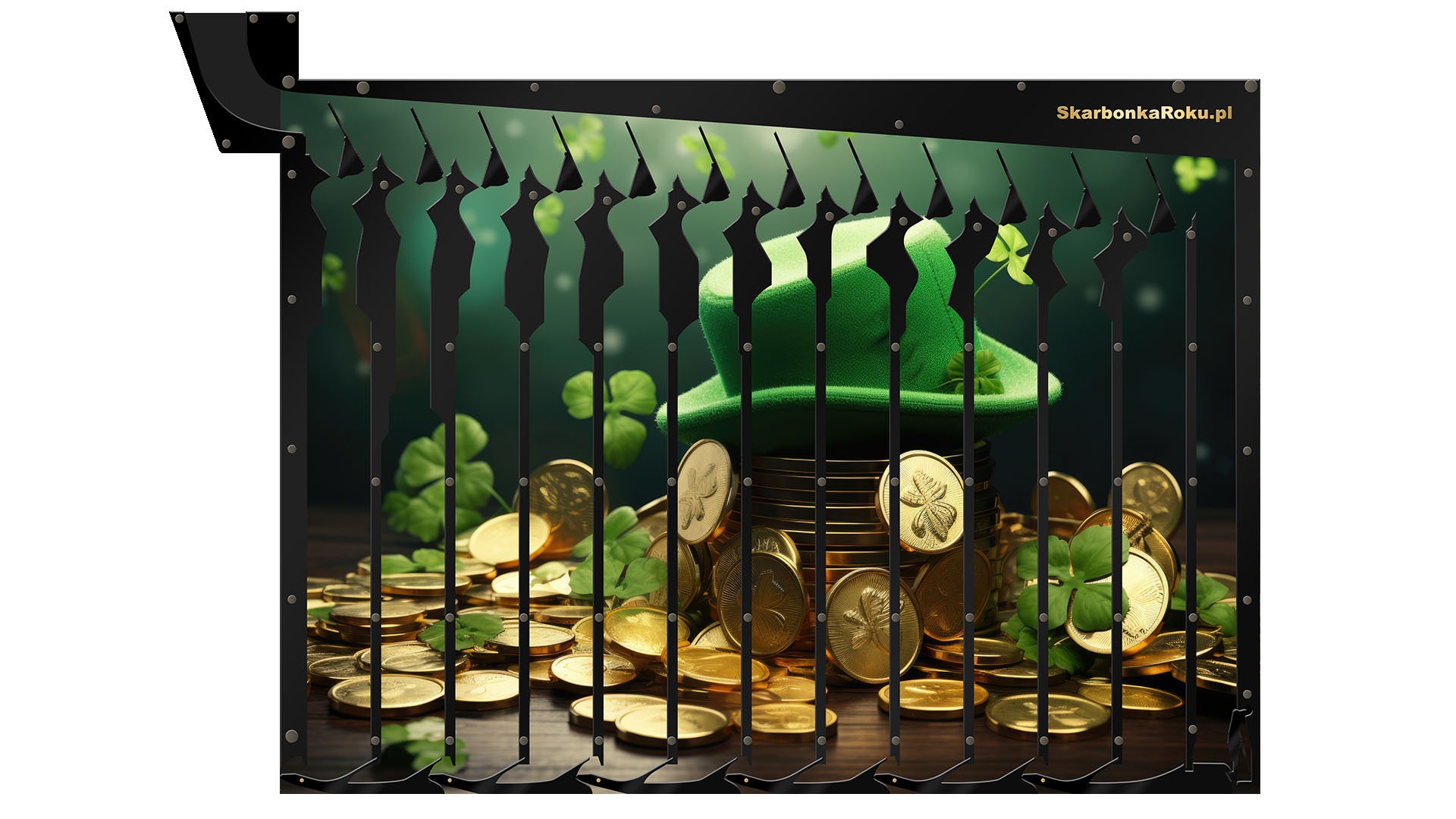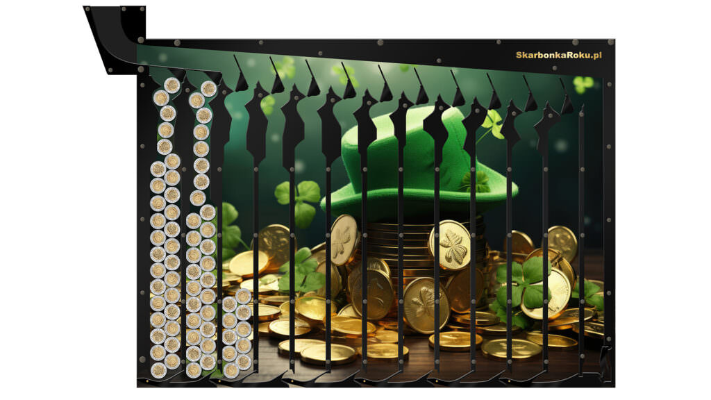 Skarbonka na 5 zł Kapelusz ze Złotem jako doskonały pomysł na prezent urodzinowy czy imieninowy. Plakat z monetami sprawi się w formie skarbonki na oszczędzanie i oszczędzanie pieniędzy.