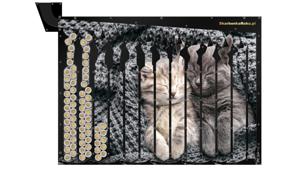 Skarbonka z kotkami na prezent dla miłośnika zwierząt, szczególnie kotów. Skarbonka z kotkami będzie również świetnym prezentem dla dzieci na urodziny, dzień dziecka i na pewno za każdym razem sprawi wiele radości takim obrazem w formie kalendarza.