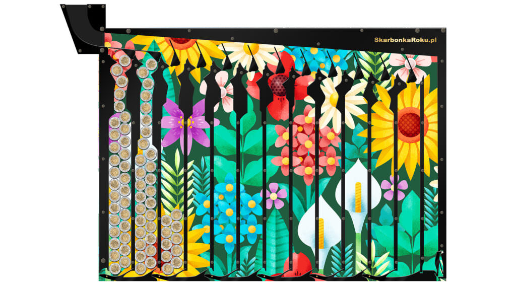 Skarbonka Ścienna Kwiaty w formie plakatu do skarbonki, stanie się na pewno doskonałym pomysłem na prezent nie tylko dla kobiety. Będzie to na pewno doskonała dekoracja każdego wnętrza i sprawdzi się również jako pomysł na zbieranie pieniążków. Serdecznie zapraszamy do zapoznania się z innymi pomysłami na prezent z naszej oferty.