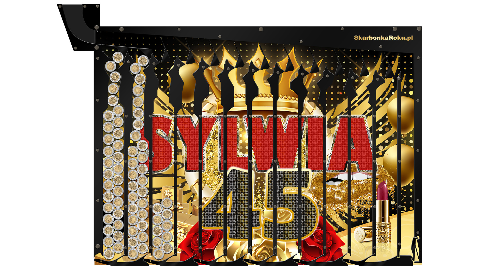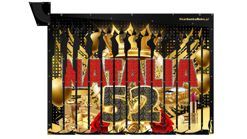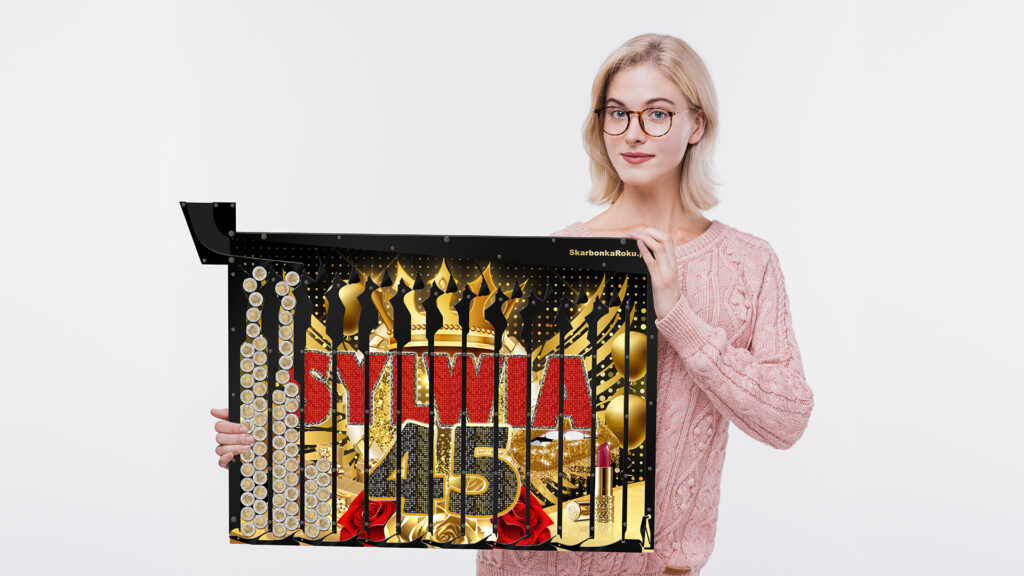 Skarbonka Ścienna na prezent dla kobiety, w której możemy umieścić imię solenizantki oraz ile lat kończy. Jest to super propozycja by obdarować kobietę wyjątkowym prezentem, którego nie znajdziecie nigdzie. Indywidualna personalizacja dla konkretnej osoby. Plakat został specjalnie przygotowany by był super pomysłowym prezentem dla kobiety.