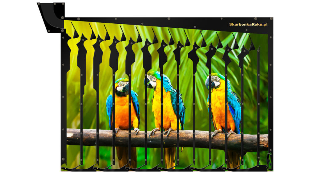 Skarbonka Ścienna Papugi jako doskonały prezent do nowego mieszkania czy np. na parapetówkę i na pewno doskonale zaprezentuje się w niejednej kuchni. Będzie to na pewno doskonała dekoracja każdego wnętrza i sprawdzi się również jako pomysł na zbieranie pieniążków. Serdecznie zapraszamy do zapoznania się z innymi pomysłami na prezent z naszej oferty.