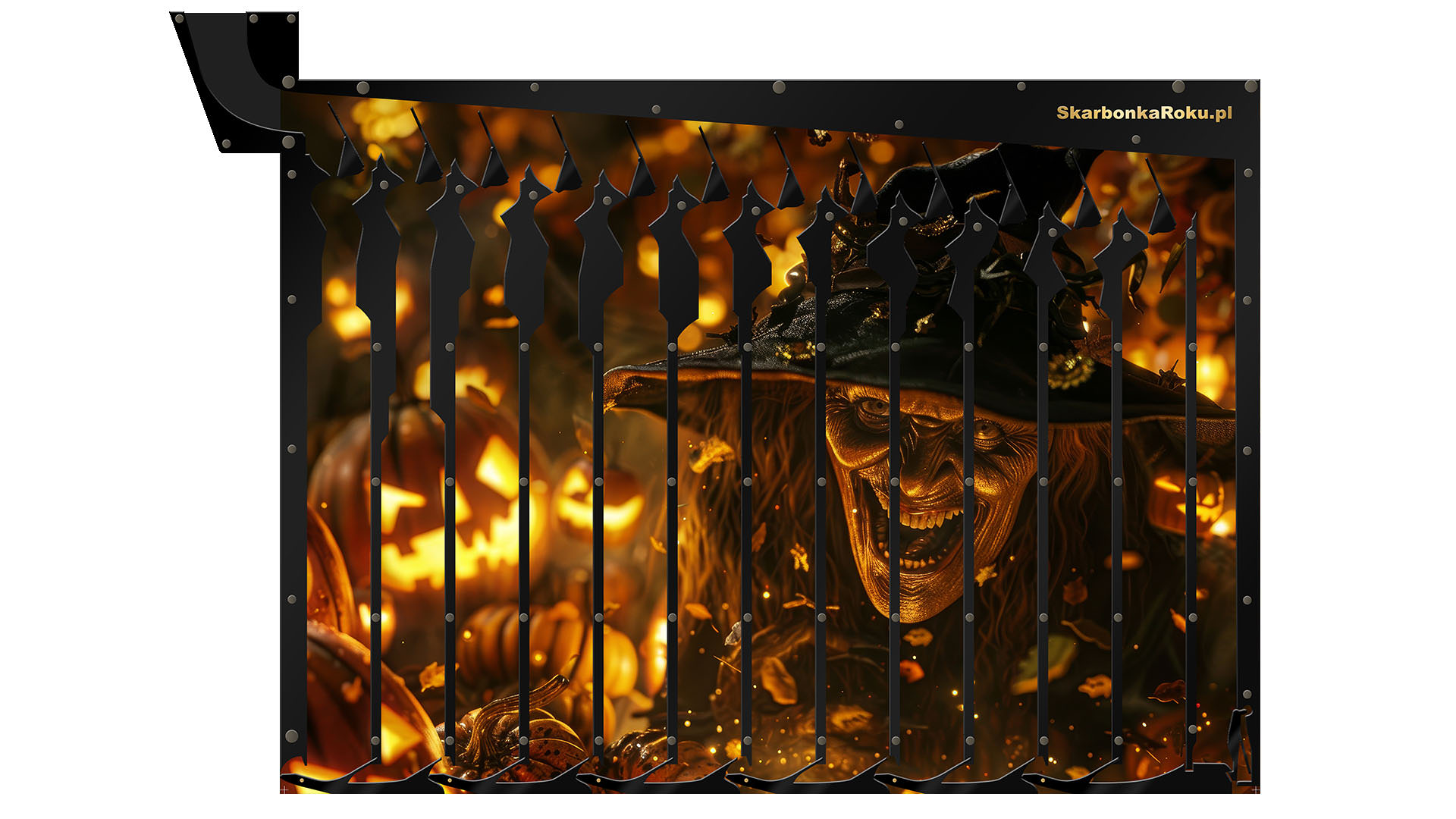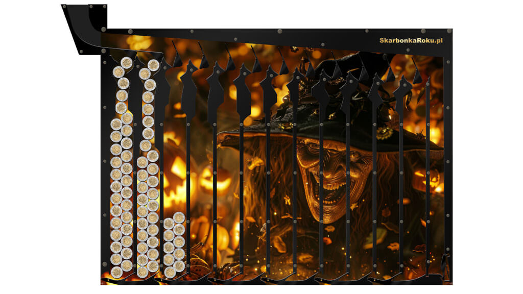 Skarbonka Czarownica na Halloween to jedna z opcji dekoracji ściennej z motywem Halloween lub zabawnym pomysłem np. dla koleżanki. Szykując dom na przyjęcie w klimacie Halloween. Skarbonka Halloween na 5 zł idealnie wpasuje się w klimat i będzie doskonałym uzupełnieniem zabawy w tym dniu.