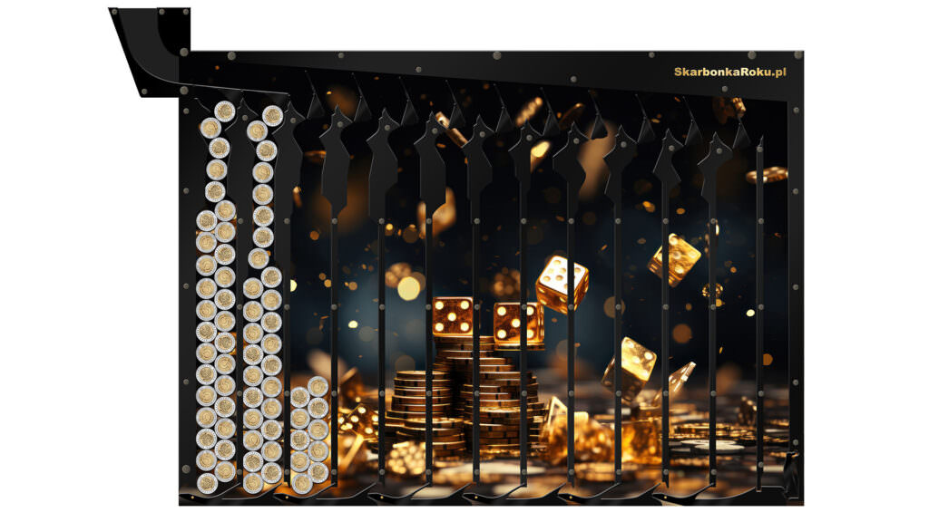 Skarbonka Złote Kości na monety 5 zł będzie na pewno kojarzyła się ze szczęściem, i wkomponuje się we wnętrze ze złotymi odcieniami i będzie też doskonałym prezentem na wiele okazji podobnie jak nasze inne skarbonki ze złotem.