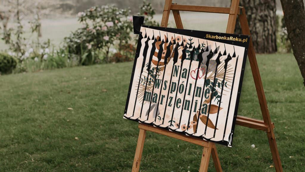 Może to być również fajna opcja dla samych młodych by na weselu ustawić taka skarbonkę, a w zaproszeniach czy rozmowie z gośćmi zachęcić ich do wspólnej zabawy. Wystarczy powiedzieć wszystkim by na wszelki wypadek zabrali ze sobą ta przysłowiową piątkę. Na gościach na pewno taka skarbonka postawiona na sztaludze zrobi ogromne wrażenie i ich samych zainspiruje do wspólnego działania. Być może sami będą mieli ochotę na taki produkt.